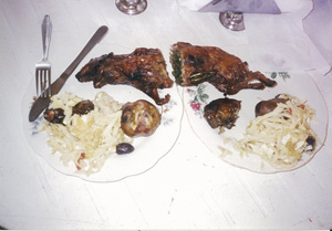 その拡大図。よく見ると大皿に乗ったメインディッシュがクイです。
