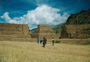 それにしても遺跡を上から眺めてあらためて思うのは、段々畑がほんまに凄いなぁということです。崖のギリギリまで石組みを作ってあるのですが、農作業中にちょっと油断すると、崖の下のウルバンバ渓谷を真っ逆さまに落ちていきます。恐ろしや。