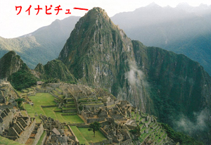 有名なマチュピチュの遺跡の全景写真には、必ずと言っていいほど奥の山が一緒に写りこんでいます。これは「ワイナピチュ」と呼ばれていて、現地のインディヘナの言葉、ケチュア語で「若い峰」という意味だそうです。南米大陸の主食、トウモロコシのようなユニークな形をした急峻な山です。よく見るとこの山の頂き付近にも段々畑や遺跡らしきものが見えます。インカの民の根性?たるや恐るべしですね。