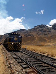 アンデス山中を走る鉄道。鉄道好きの専従Wによると、標高4000mを超えるような高地では燃料が燃焼しにくいため列車の仕様も特殊なものなのではないか、とのことでした。僕にはちんぷんかんぷんですが…。