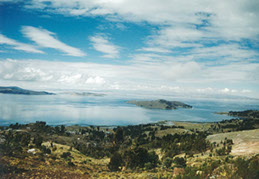 陸から眺めるチチカカ湖。複雑な形をしているためよく分かりませんが、果てしなく巨大な湖です。