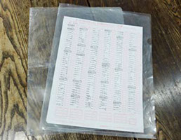 注文書やチラシ等を入れている透明のファイルです。必ず翌週にお返しください。