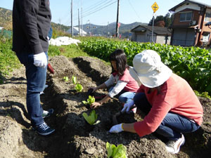 11月13日日曜日。南丹農業教室。白菜苗の定植と、大蕪のネット片付け。しかしこの程度の作業はすぐおわるので、焼き芋、そしてピザ大会とゆー、