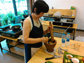 この料理教室は日本語で習えます。先生は日本オタクのオップさん。