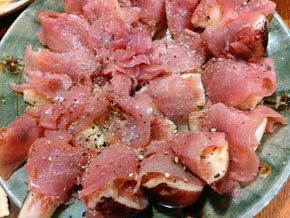 ドイツ名物料理といえばソーセージがあげられますが、ドイツではBrust(ブルスト)といいます。日本で言えば小さいのがウインナー、太いのがフランクフルト、とか勝手に言ってますが、これではドイツ人にはちんぷんかんぷん。それぞれの地域にそれぞれの独自なブルストがあり、その土地の名前で呼ばれています。今回登場するのはニュールンベルグのちょっと小さめのやつ。荒目の肉挽き加減に、炭火で焼き焼き、脂がじゅわ~。ビールと一緒に何本でもいけまっせ。