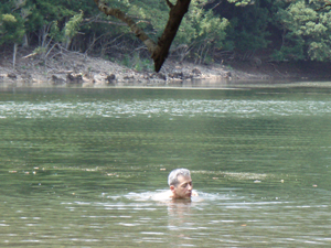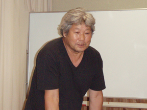 | 上村さんの牛はホルスタイン。 牛舎を見学してまず気付いたことは、牛がとてもおとなしく、身体も汚れていないことです。 | 上村さんは芦浜原発反対運動を長く続けられて来られた方でもあり、芦浜原発が白紙撤回となるまでの経緯を説明して下さりました。 |